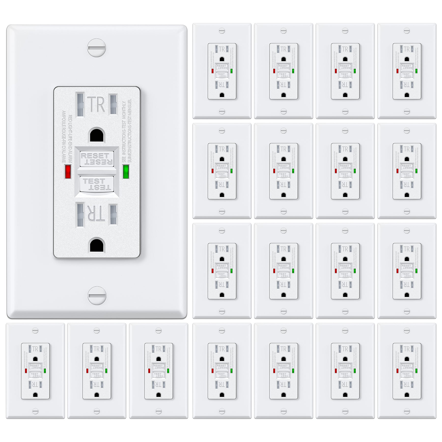 20 Pack – ELECTECK 15 Amp GFCI Outlets, Tamper Resistant (TR), Self-Test GFI Receptacles with LED Indicator, Ground Fault Circuit Interrupter, Decor Wallplate Included, UL Listed, White